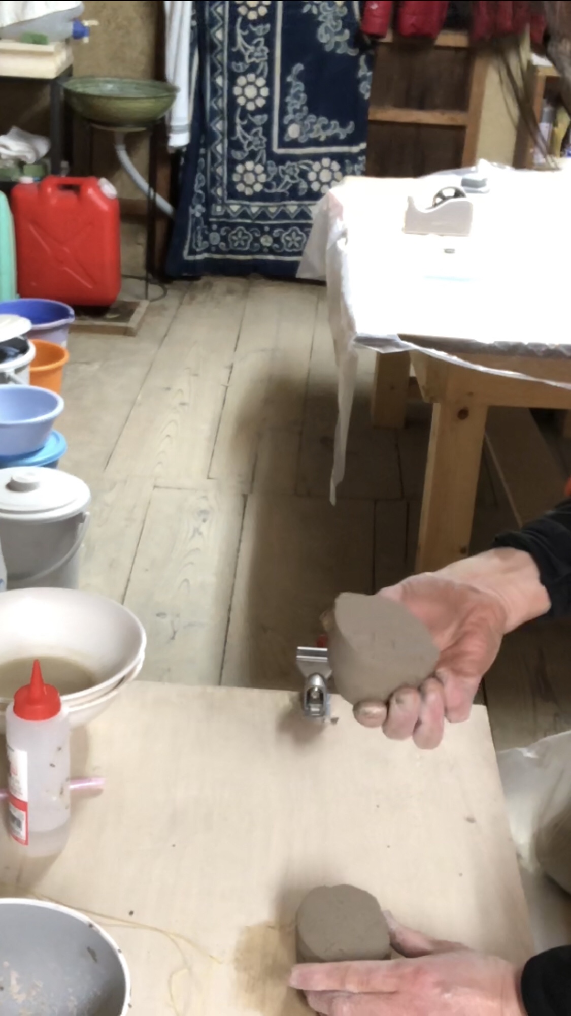 作品 作品作り 陶芸 バブル喰い、、、、 2018年3月18日 2018年3月18日 階元 龍一 FacebookTwitterはてブLINEPocketFeedly 今日は焼締め作品を土から調合しました。 どちらかといえば緋色を狙った調合です。よーく練ります。しっかりと混ざっているか確認します。 ロクロ挽きをします。今回は小皿をロクロ挽きしました。 残った土でぐい飲みサイズを作りました。 帰ってからおやつのポッキーを「バブル喰い」しました。 いつもポッキーはバブル喰いです。この食べ方が食べた感があります。 大阪府堺市 陶芸 階元龍一 FacebookTwitterはてブLINEPocketFeedly