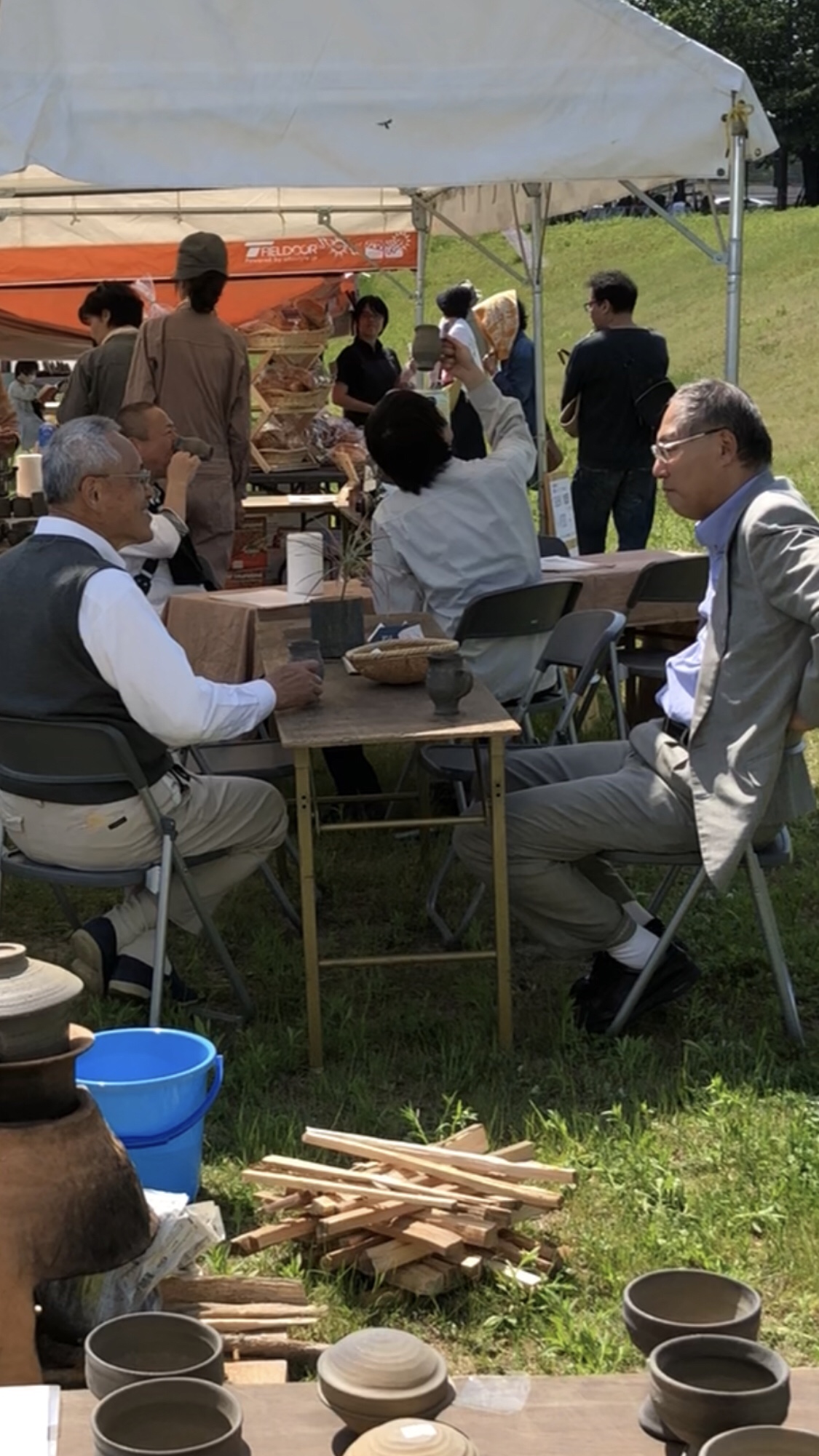 すえむらの会 よく頑張ったぁ〜 2018年4月29日 2018年4月29日 階元 龍一 FacebookTwitterはてブLINEPocketFeedly 朝6時に集合。狭山池まつりに参加です。 「すえむら」の会で参加して甑で古代米を炊きました。炊き終わった古代米は無料でふるまいました。 須恵器コーヒーを飲んでお話し中の西念先生と森村先生です。途中参加してマニアックな話しを聞いていました(^^) 今日はイイ天気でたくさんの人がいらっしゃいました(^^) FacebookTwitterはてブLINEPocketFeedly
