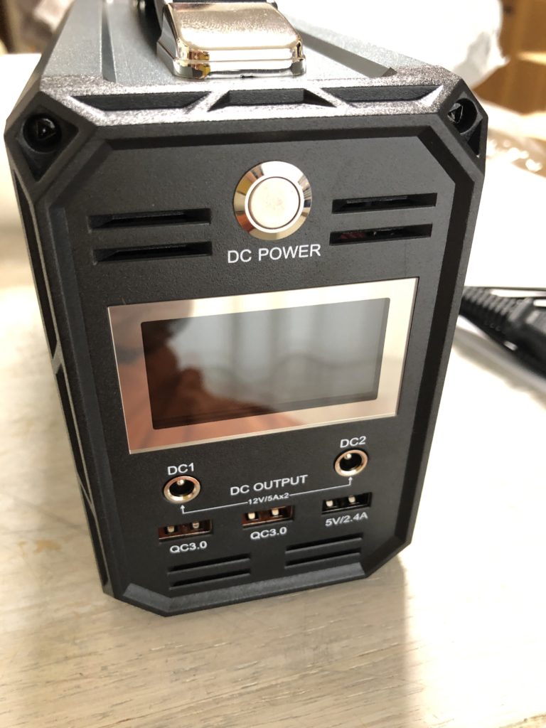 ソーラーシステムの充電で使える電気にするかポータブル充電器で電気を使うか悩んでいましたが、ポータブルにしました。