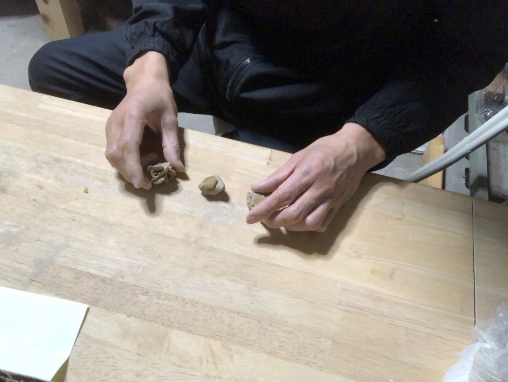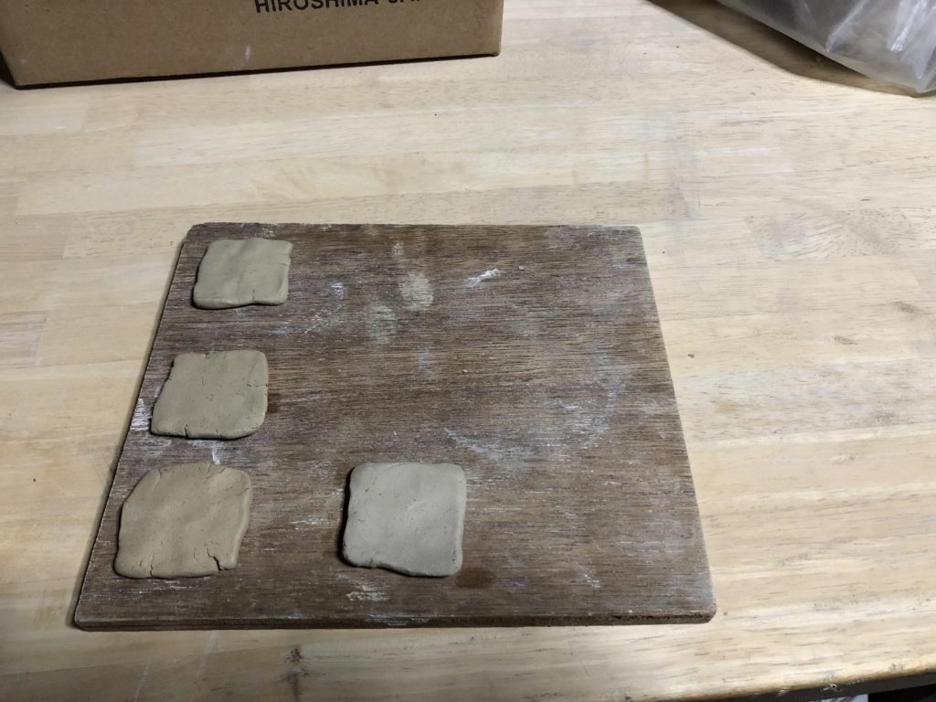 陶土 陶芸 陶芸 テストピース 灰釉薬 土の調合、、、、 2019年11月24日 2019年11月24日 階元 龍一 FacebookTwitterはてブLINEPocketFeedly 釉薬の調合は陶芸をされている方なら普通に(何が普通か?)テストピースを作ったことがあると思います。 釉薬の雰囲気はいいのですが何かが足りないと思い土の配合を考えてテストをすることにしました。 三種類の違う配合の土を作りました。外割りとして10に対して10%と20%と30%です。 もともと基本となる土も調合しているので作りがいがありますね。 プレート状にしたところです。 これに灰釉薬を掛けて焼成いたします。 どうなることでしょう? お楽しみに。 FacebookTwitterはてブLINEPocketFeedly